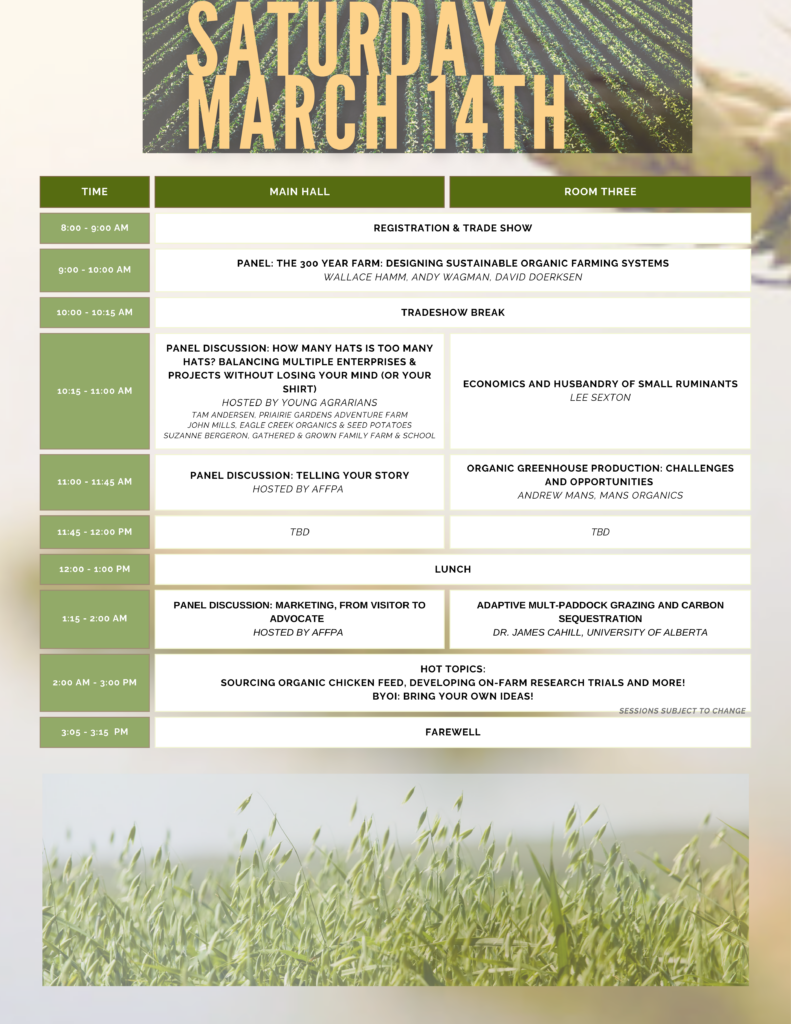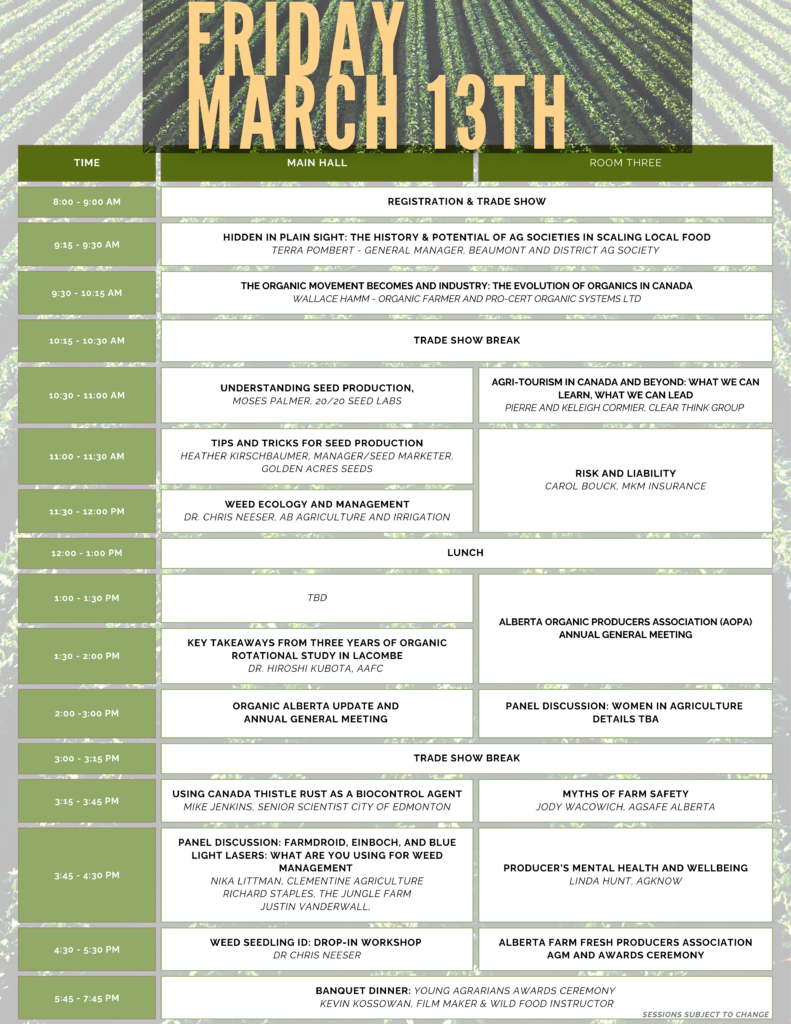 With over 25 speakers and multiple break-out sessions, the annual Organic Alberta conference offers a fantastic opportunity to equip farmers, producers, U-pick berry growers and agri-tourism operations with the information they need to succeed while fostering valuable connections within the industry.
