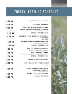On April 10, 2026, join fellow farmers, processors, and agricultural professionals from across Northern Alberta for a one-day conference and trade show at the La Crete Heritage Centre. Explore the unique opportunities and challenges of the Peace Region, one of Canada’s key organic hubs with over 300 organic farms. Attend farmer-led sessions, visit the trade show to connect directly with industry experts, discover new tools and resources, and gain practical insights to grow your operation.
