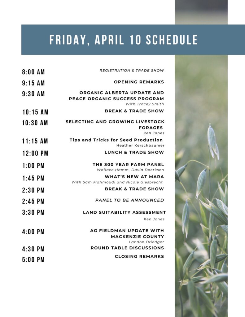 Calling all farmers, industry pioneers, and organic enthusiasts! Get ready to cultivate success at the Annual La Crete Organic Farming Conference & Tradeshow, hosted in partnership with the Mackenzie Applied Research Association.